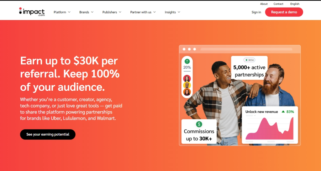 As an affiliate, you earn a commission for bringing new partners to Impact.